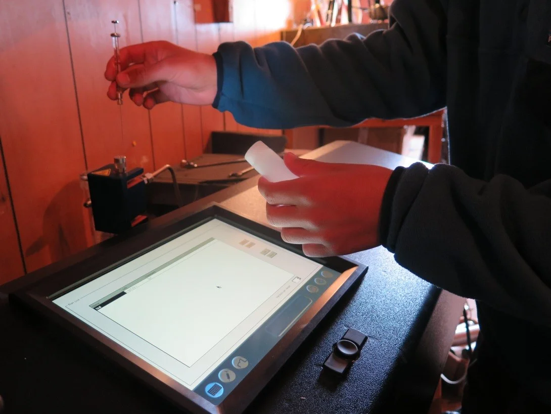Analyzing rainwater samples using a water isotope analyzer. Photo by Blaire Slavin.