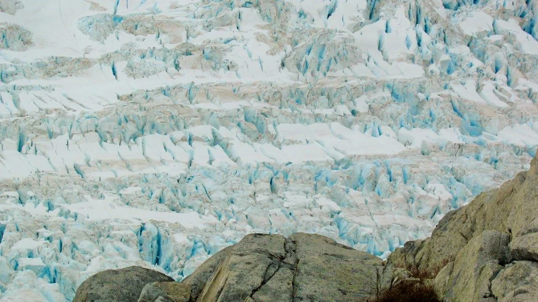 We can then characterize the movement by whether or not the flow is accelerating (extensional flow) or decelerating (compressional flow) which often depends on the thickness of the ice and the direction the rock under the glacier is sloping. During extensional flow, the bedrock slope underneath the glacier is getting steeper so the ice moves faster. This process can cause the ice to break or fracture at the surface as the ice gets pulled apart. Inversely, if the bedrock slope is less steep down-glacier, compressional flow can occur, which essentially pushes the ice together and causes the surface ice to break apart. These fractures are the formations we’ve come to know as crevasses.