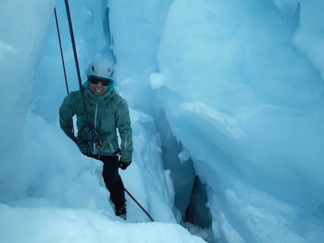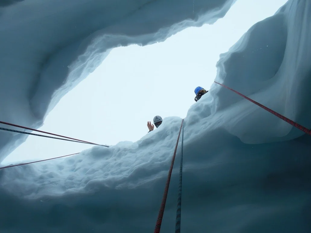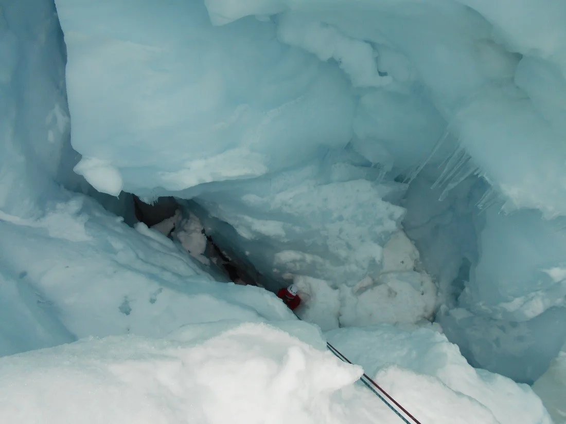 Drew all the way at the bottom of the crevasse. Photo by Lara Hughes