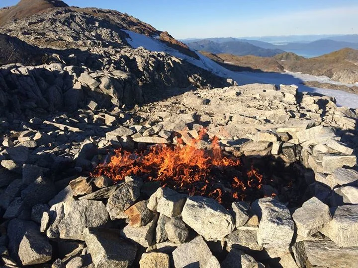 “We need someone to burn trash,” Annika announced during our daily post-breakfast work detail assignments. I raised my hand to volunteer. I figured it would be good to get the full picture of where my trash was going. Later in the day, I met Annika at the burn pit, a metal grate on the side of the nunatak, where we burn the trash. She explained the procedure, which involved first emptying the bags of used wrappers, toilet paper, food scraps, and plastic bags. Then, she proceeded to pour gasoline over the trash (an essential step in this rainy climate). Then she poured a bit more gas into a tin can, lit it then tossed it into the mound of garbage. The pit ignited, and she instructed me to poke the pile with a long stick to give the flames oxygen.