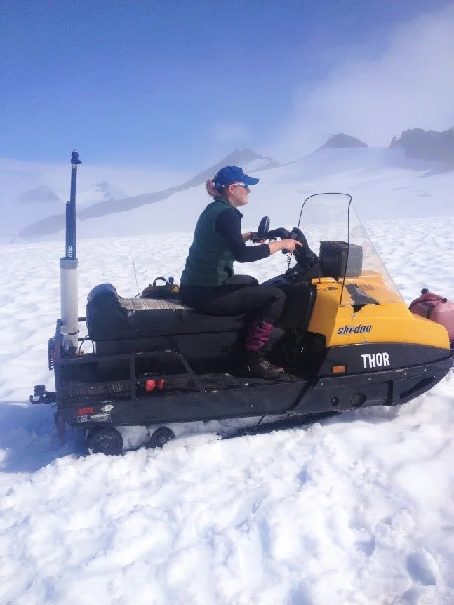 Across the entire Taku Glacier system, elevation and location data are collected using a Trimble GPS. We ride to different measurement points on snow machines (my favorite is named “Thor”). GPS measurements are taken in profiles going up and down the glacier, as well as across. Based on these elevation data, we can determine whether the Taku Glacier system is losing or gaining mass in any areas and the magnitude of these changes.