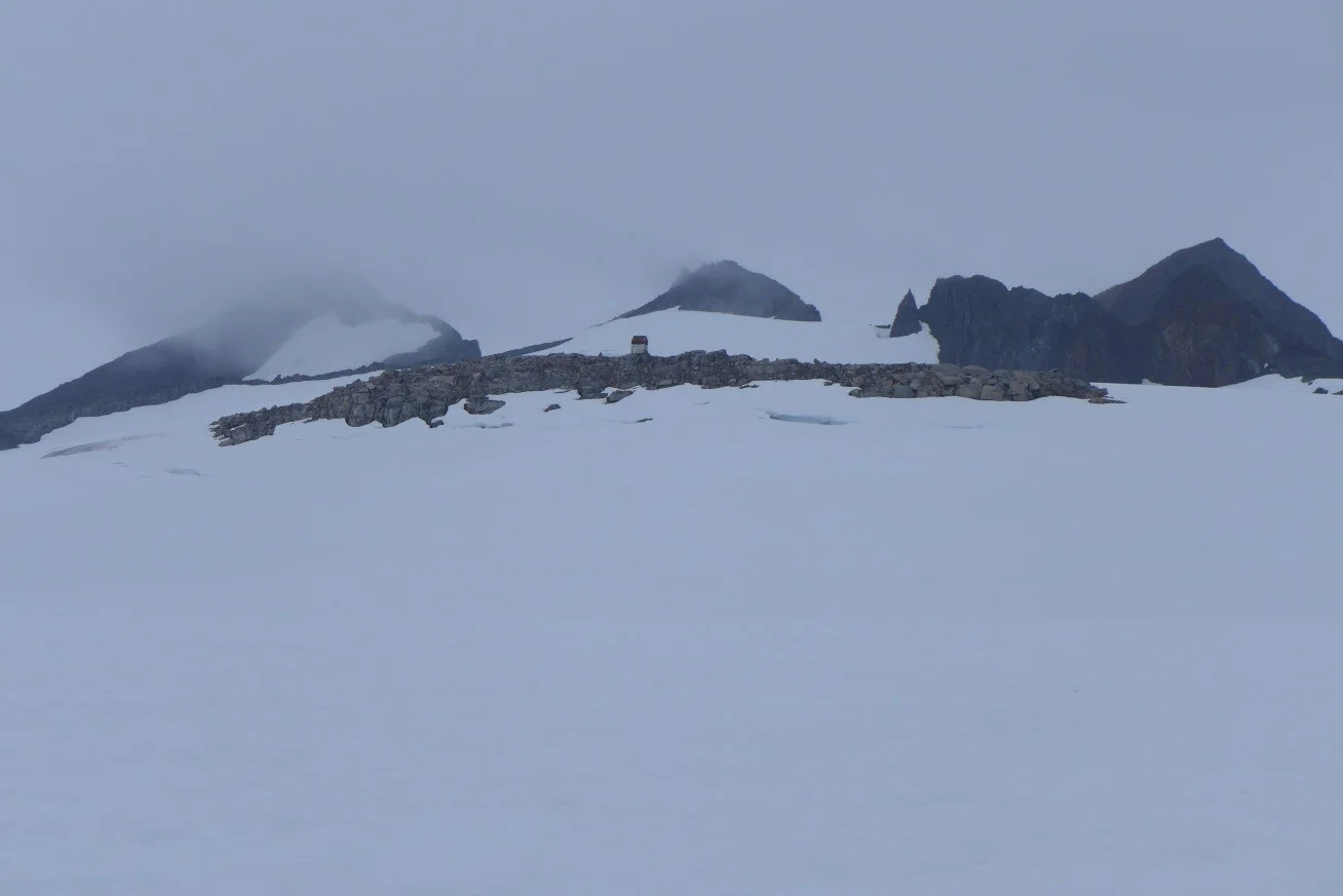 The dinky Camp 9 perched atop a lonely nunatak. Photo by author.