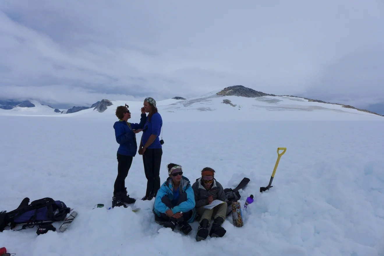 In actuality, I quickly found the proximity with a much smaller group to be incredibly refreshing. This trip opened up a space for intimacy and sincerity, allowing everyone to forget their woes and tribulations, which is ultimately unattainable with large numbers of people. With the comradery coupled with the labor of digging deep into the snow, JIRP culture flourished. Faces were painted, music jammed and pit dancing was at its classiest. By the time measurements to the annual layer were taken, the sun had even managed to poke its rays through the clouds and blue sky illuminated the gorgeous encompassing nunataks.