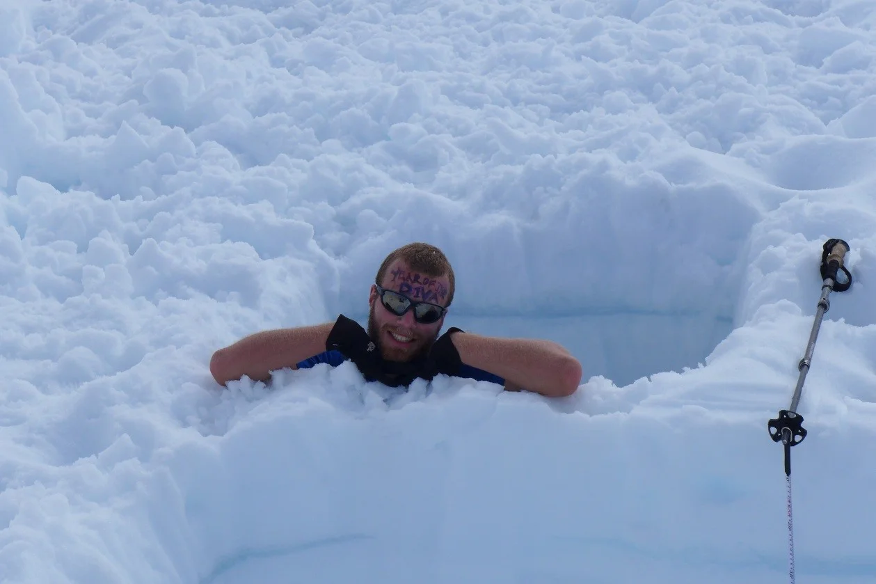 Sharing an entire camp out here on the icefield with roughly 50 other people breeds a certain type of claustrophobia. That isn’t to say that being surrounded by that many people is undesirable, it just amounts to a stressful living environment. Imagine 50 individual people telling each other how much better the coffee could be if they had made it, that lectures are too long, that the weather is a drag or that their projects aren’t going the way they had hoped. The list goes on. And on. And on. Truly, everyone is a critic in camp whether they realize it or not. Room for reflection and personal space in general are constrained by everyone’s self-declared expertise in literally everything. But in spite of all the pettiness, I found a solution in digging large pits in the snow.