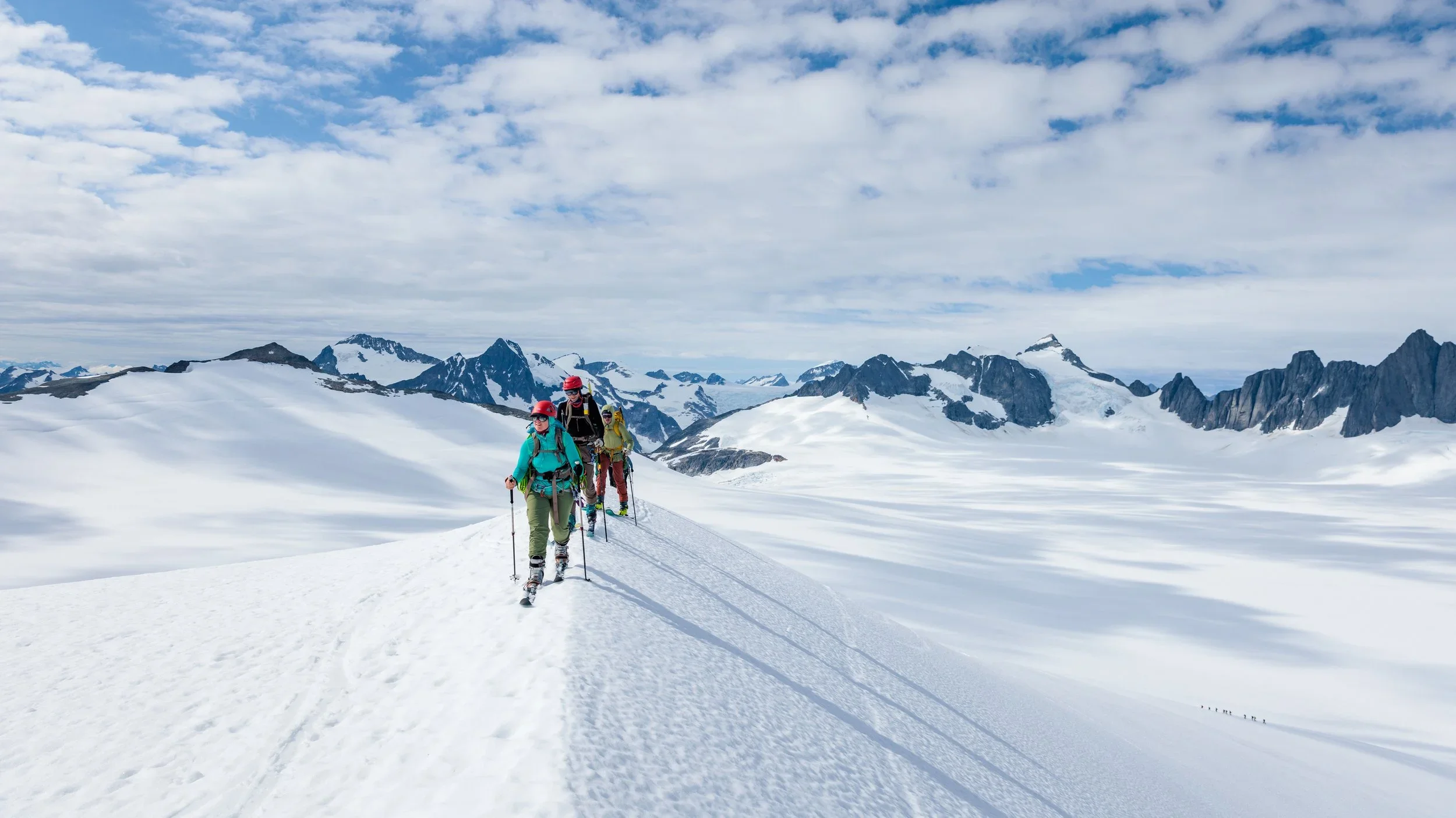 Camp 10 is our biggest camp (it sleeps over 60 people) and is a twenty-minute helicopter trip from Juneau. Block 2 faculty fly in directly to Camp 10. The end of Block 2 is marked by the ski traverse from Camp 10 to Camp 18 (the “High Ice”). The ski is 18 miles, covering terrain that is mostly flat or gently sloping uphill. There are a few sections that may require technical route finding and/or roping up - we will teach all the skills required to complete this trip. Block 2 faculty will fly out of Camp 18 after completing the Camp 10 to Camp 18 traverse.